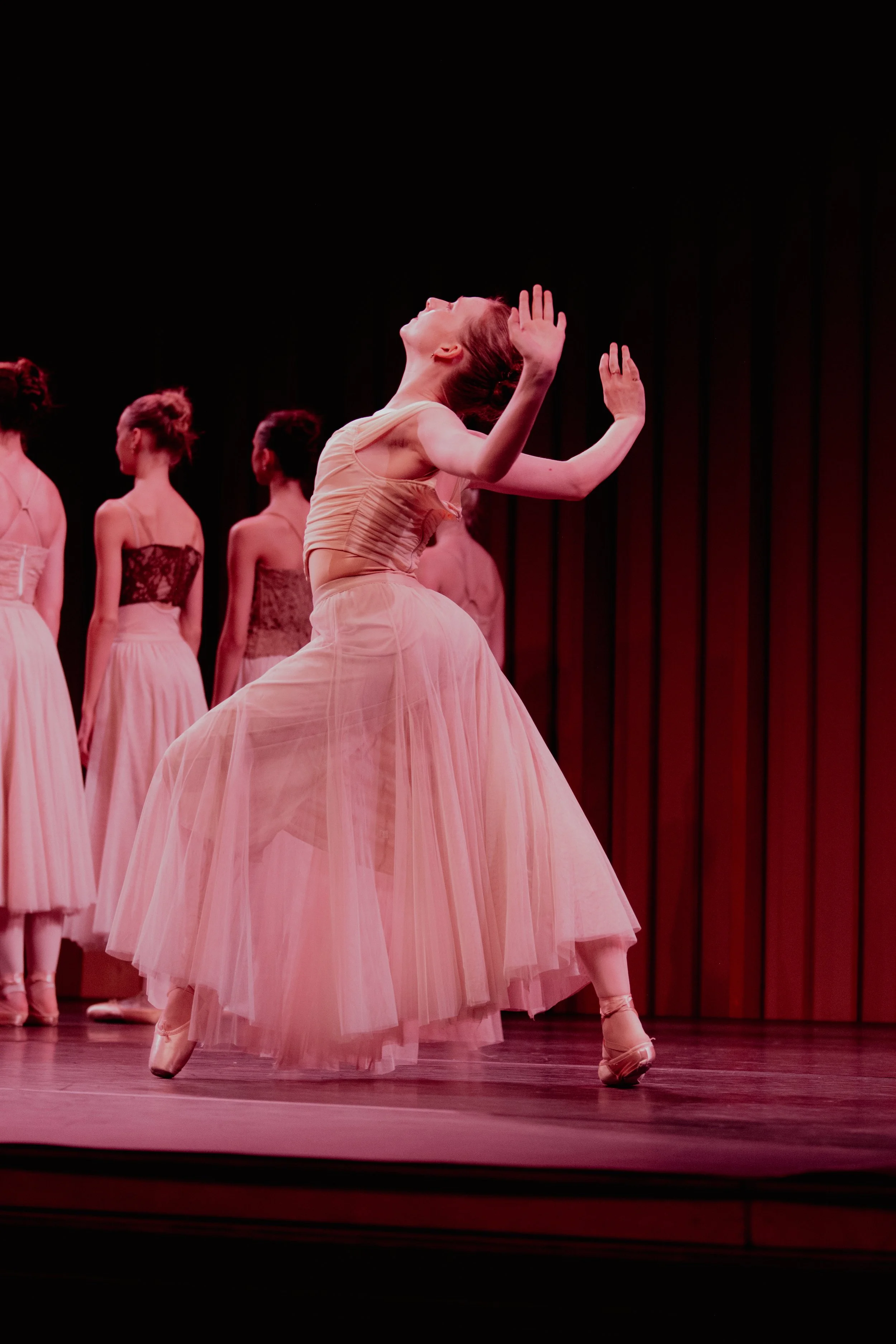 Costumes for Ally Helman’s Everflow (Colburn Dance Academy December 2025) were carefully altered for fit and functionality, with each dancer meticulously stitched into their pieces for every performance. Photos by Hope Spears.